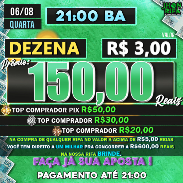 TOP 1ºR$50,00 /TOP 2º R$30,00 /TOP 3ºR$20,00