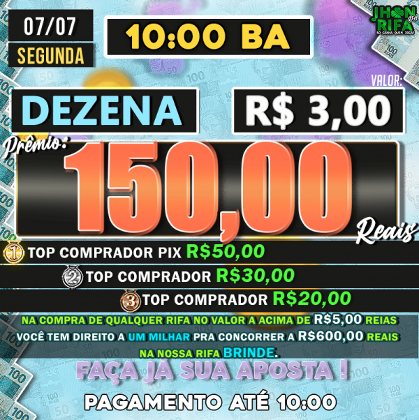 TOP 1ºR$50,00 /TOP 2º R$30,00 /TOP 3ºR$20,00