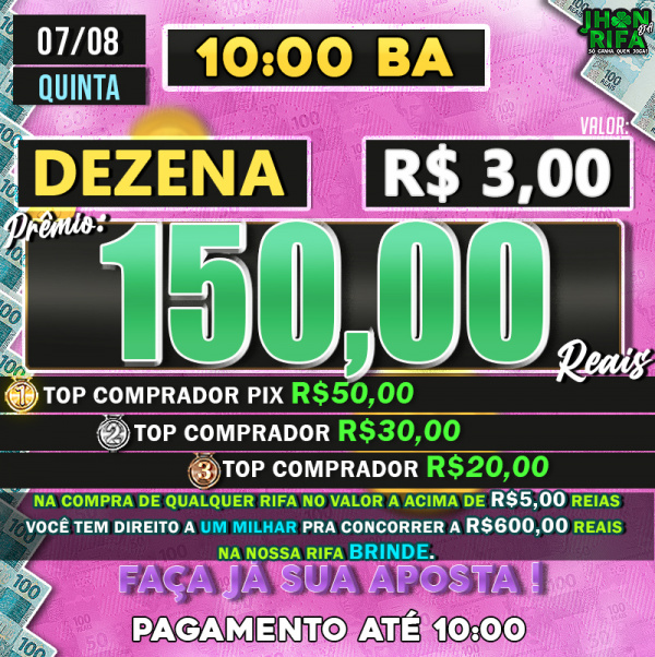 TOP 1ºR$50,00 /TOP 2º R$30,00 /TOP 3ºR$20,00