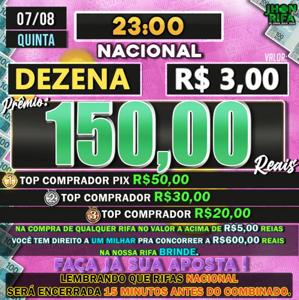 TOP 1ºR$50,00 /TOP 2º R$30,00 /TOP 3ºR$20,00
