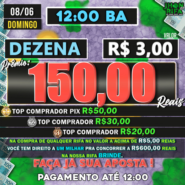 TOP 1ºR$50,00 /TOP 2º R$30,00 /TOP 3ºR$20,00
