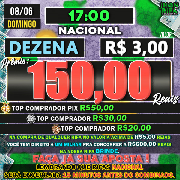 TOP 1ºR$50,00 /TOP 2º R$30,00 /TOP 3ºR$20,00