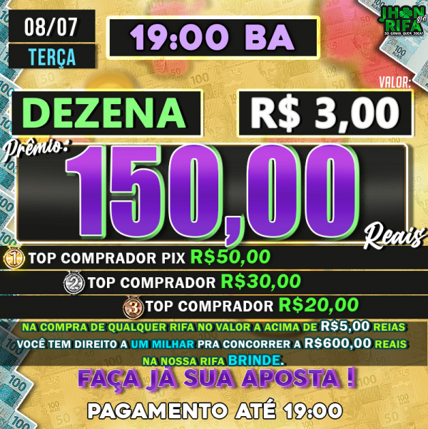TOP 1ºR$50,00 /TOP 2º R$30,00 /TOP 3ºR$20,00