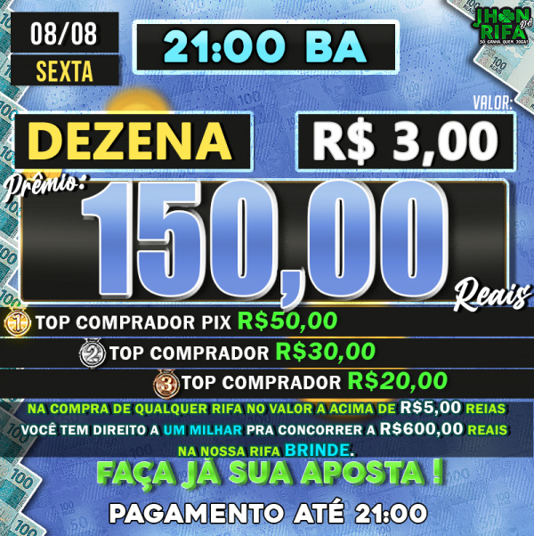 TOP 1ºR$50,00 /TOP 2º R$30,00 /TOP 3ºR$20,00