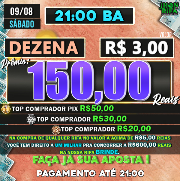 TOP 1ºR$50,00 /TOP 2º R$30,00 /TOP 3ºR$20,00
