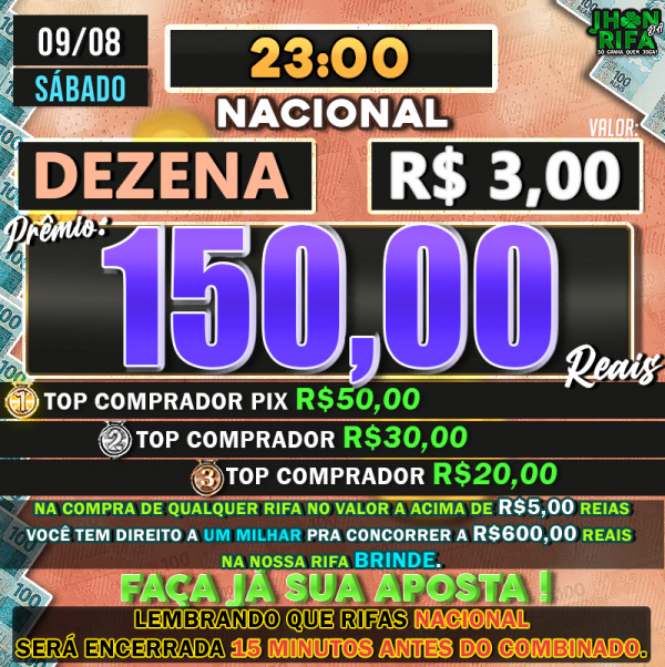TOP 1ºR$50,00 /TOP 2º R$30,00 /TOP 3ºR$20,00