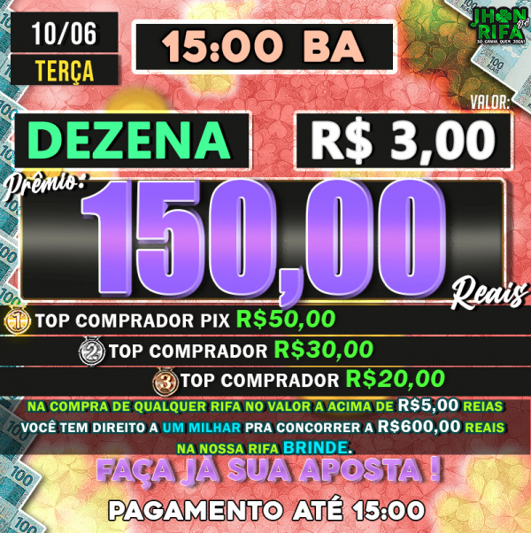 TOP 1ºR$50,00 /TOP 2º R$30,00 /TOP 3ºR$20,00
