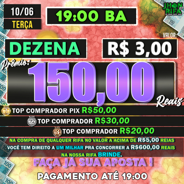TOP 1ºR$50,00 /TOP 2º R$30,00 /TOP 3ºR$20,00