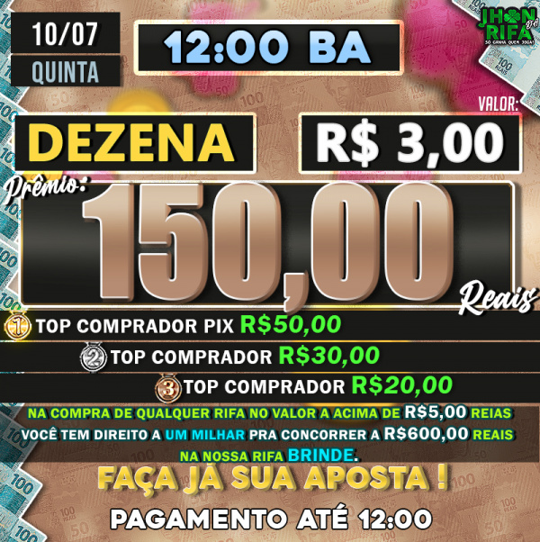 TOP 1ºR$50,00 /TOP 2º R$30,00 /TOP 3ºR$20,00