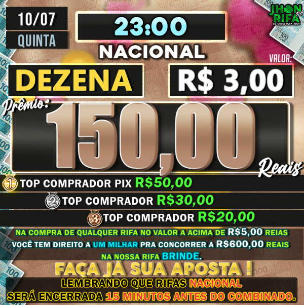 TOP 1ºR$50,00 /TOP 2º R$30,00 /TOP 3ºR$20,00