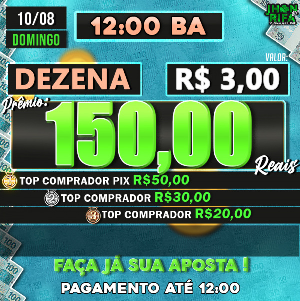 TOP 1ºR$50,00 /TOP 2º R$30,00 /TOP 3ºR$20,00