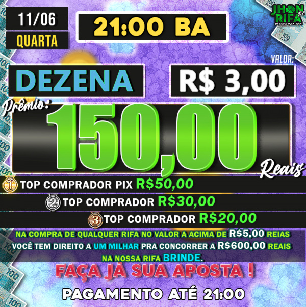 TOP 1ºR$50,00 /TOP 2º R$30,00 /TOP 3ºR$20,00