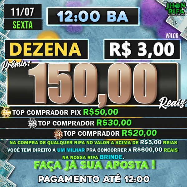 TOP 1ºR$50,00 /TOP 2º R$30,00 /TOP 3ºR$20,00