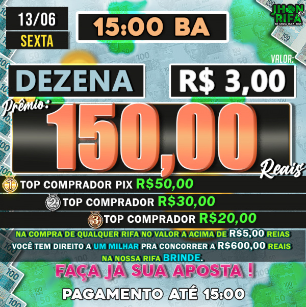 TOP 1ºR$50,00 /TOP 2º R$30,00 /TOP 3ºR$20,00