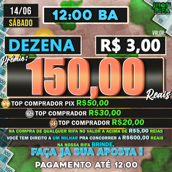 TOP 1ºR$50,00 /TOP 2º R$30,00 /TOP 3ºR$20,00