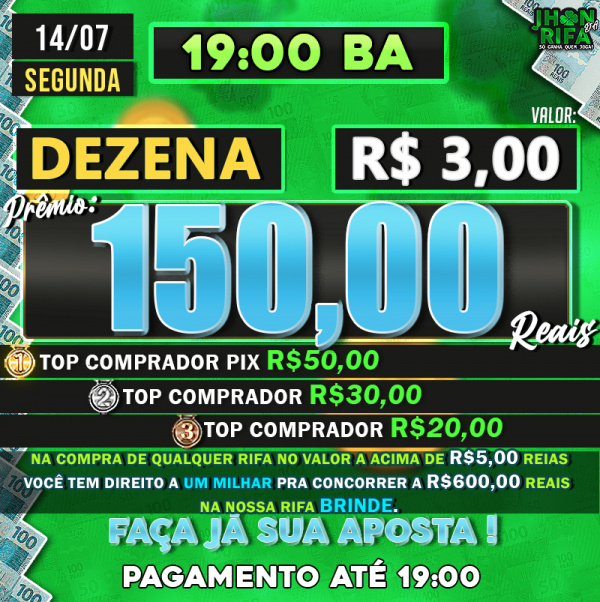 TOP 1ºR$50,00 /TOP 2º R$30,00 /TOP 3ºR$20,00