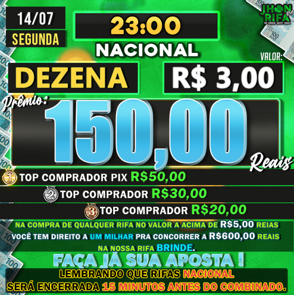 TOP 1ºR$50,00 /TOP 2º R$30,00 /TOP 3ºR$20,00