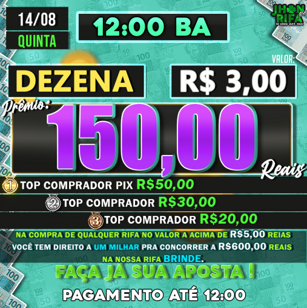 TOP 1ºR$50,00 /TOP 2º R$30,00 /TOP 3ºR$20,00