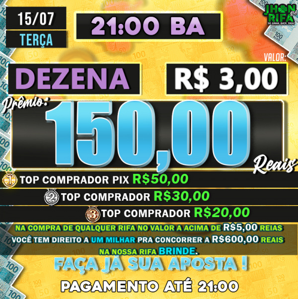 TOP 1ºR$50,00 /TOP 2º R$30,00 /TOP 3ºR$20,00