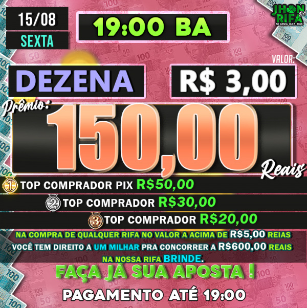 TOP 1ºR$50,00 /TOP 2º R$30,00 /TOP 3ºR$20,00