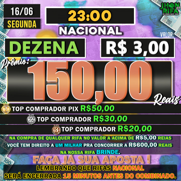 TOP 1ºR$50,00 /TOP 2º R$30,00 /TOP 3ºR$20,00