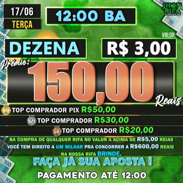 TOP 1ºR$50,00 /TOP 2º R$30,00 /TOP 3ºR$20,00