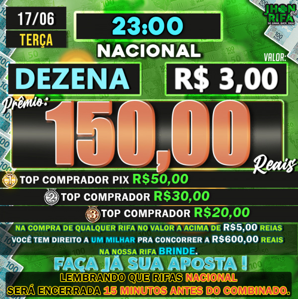 TOP 1ºR$50,00 /TOP 2º R$30,00 /TOP 3ºR$20,00