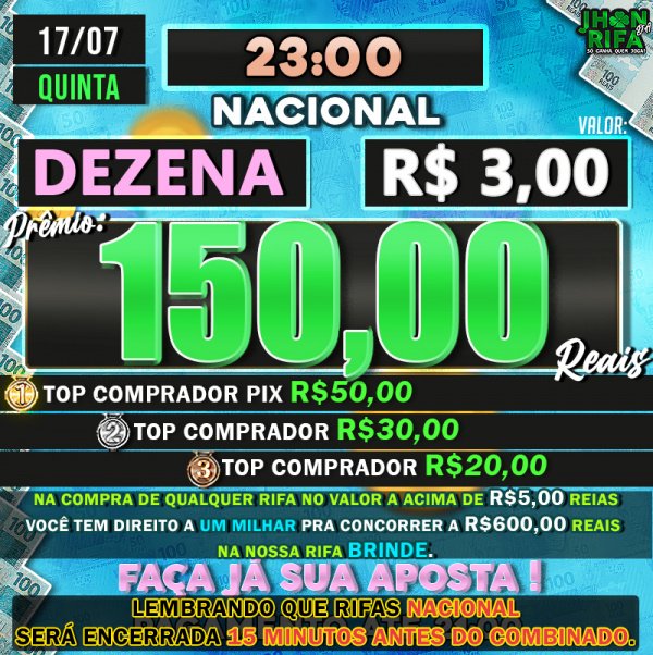 TOP 1ºR$50,00 /TOP 2º R$30,00 /TOP 3ºR$20,00