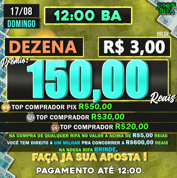 TOP 1ºR$50,00 /TOP 2º R$30,00 /TOP 3ºR$20,00
