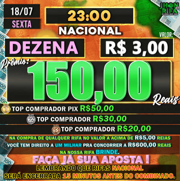 TOP 1ºR$50,00 /TOP 2º R$30,00 /TOP 3ºR$20,00
