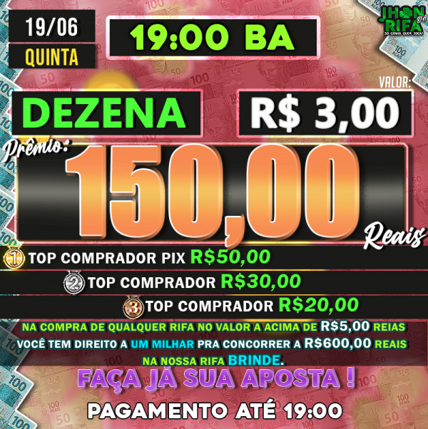 TOP 1ºR$50,00 /TOP 2º R$30,00 /TOP 3ºR$20,00