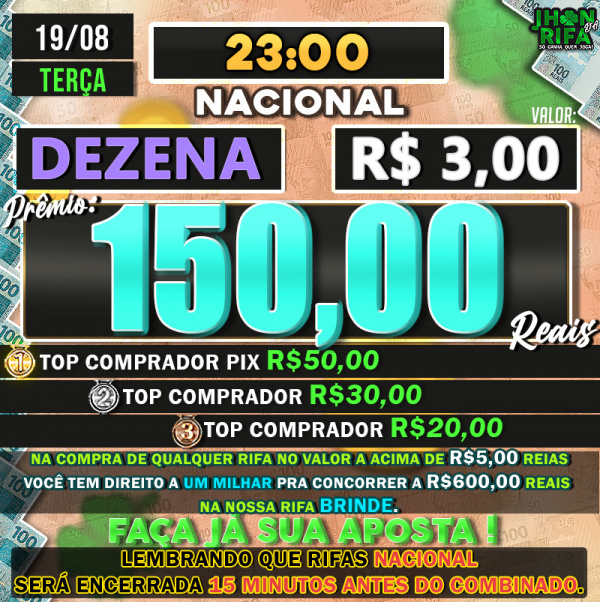TOP 1ºR$50,00 /TOP 2º R$30,00 /TOP 3ºR$20,00