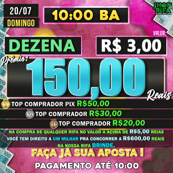 TOP 1ºR$50,00 /TOP 2º R$30,00 /TOP 3ºR$20,00
