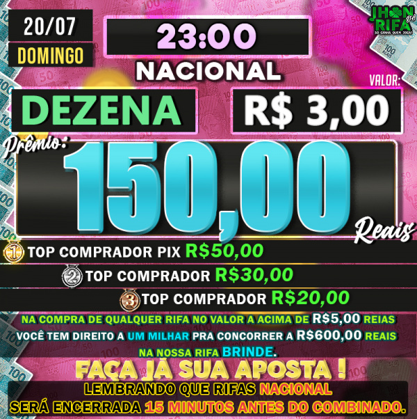 TOP 1ºR$50,00 /TOP 2º R$30,00 /TOP 3ºR$20,00