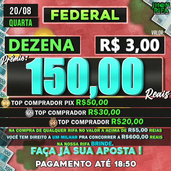 TOP 1ºR$50,00 /TOP 2º R$30,00 /TOP 3ºR$20,00