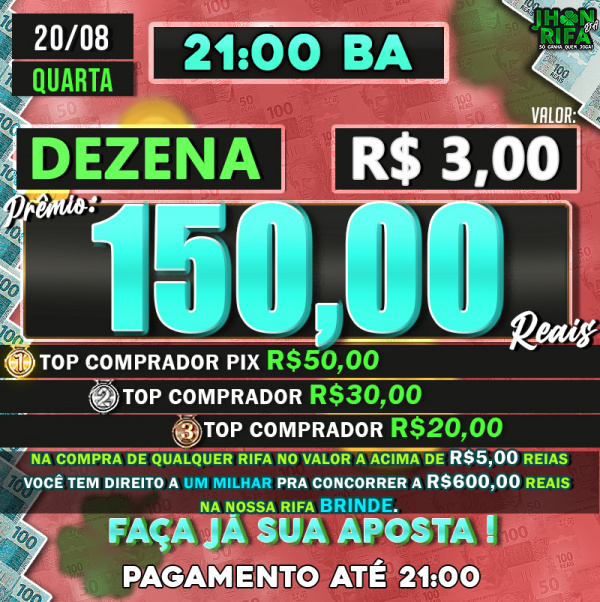 TOP 1ºR$50,00 /TOP 2º R$30,00 /TOP 3ºR$20,00