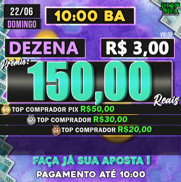 TOP 1ºR$50,00 /TOP 2º R$30,00 /TOP 3ºR$20,00