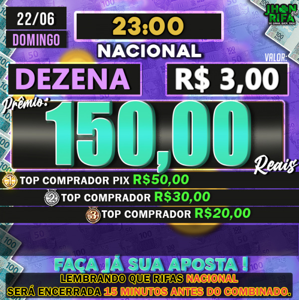 TOP 1ºR$50,00 /TOP 2º R$30,00 /TOP 3ºR$20,00