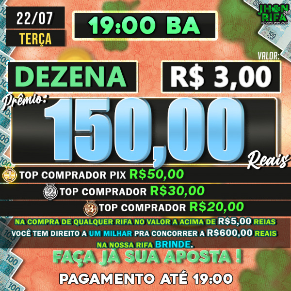TOP 1ºR$50,00 /TOP 2º R$30,00 /TOP 3ºR$20,00