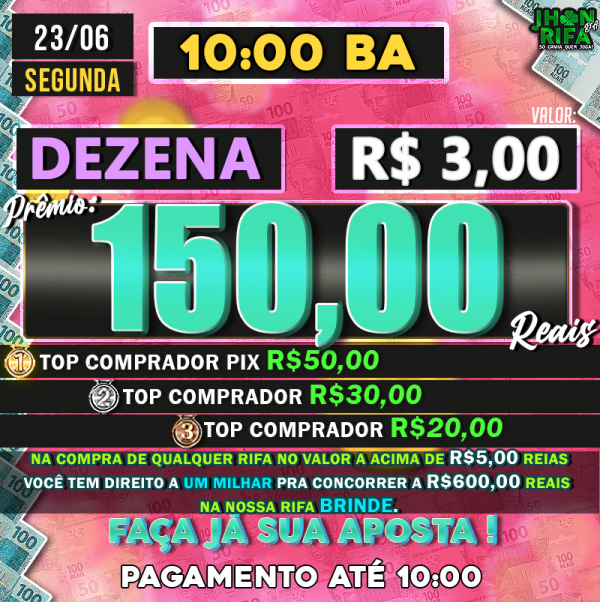 TOP 1ºR$50,00 /TOP 2º R$30,00 /TOP 3ºR$20,00