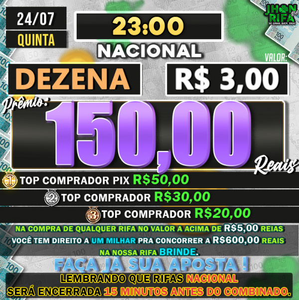 TOP 1ºR$50,00 /TOP 2º R$30,00 /TOP 3ºR$20,00