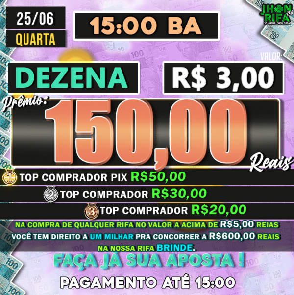 TOP 1ºR$50,00 /TOP 2º R$30,00 /TOP 3ºR$20,00