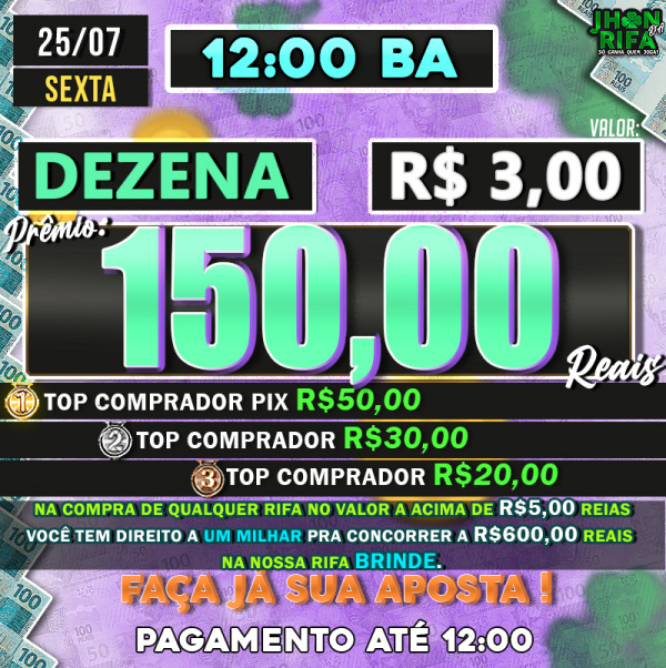 TOP 1ºR$50,00 /TOP 2º R$30,00 /TOP 3ºR$20,00