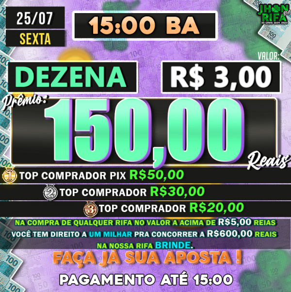 TOP 1ºR$50,00 /TOP 2º R$30,00 /TOP 3ºR$20,00