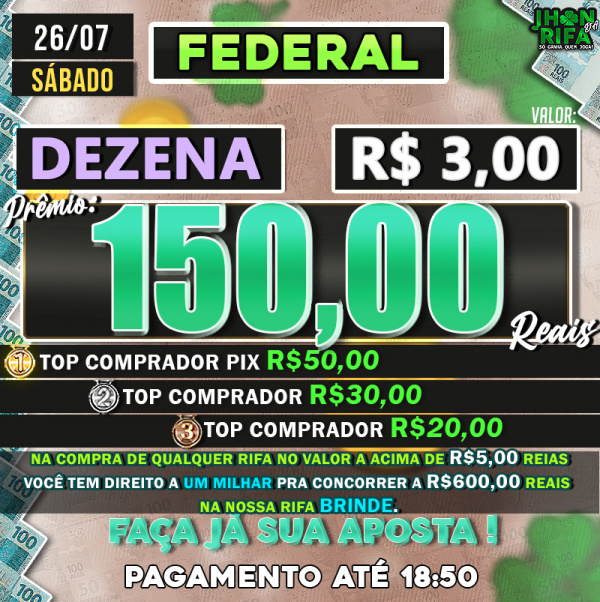 TOP 1ºR$50,00 /TOP 2º R$30,00 /TOP 3ºR$20,00