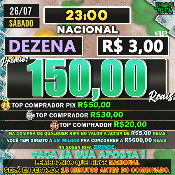 TOP 1ºR$50,00 /TOP 2º R$30,00 /TOP 3ºR$20,00