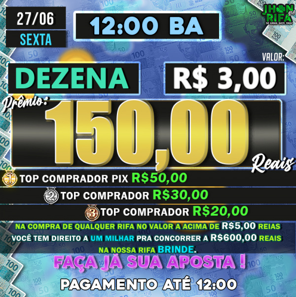 TOP 1ºR$50,00 /TOP 2º R$30,00 /TOP 3ºR$20,00