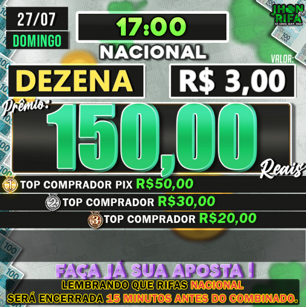 TOP 1ºR$50,00 /TOP 2º R$30,00 /TOP 3ºR$20,00