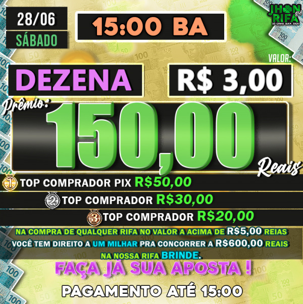 TOP 1ºR$50,00 /TOP 2º R$30,00 /TOP 3ºR$20,00