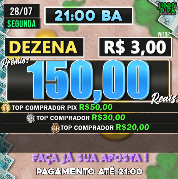TOP 1ºR$50,00 /TOP 2º R$30,00 /TOP 3ºR$20,00